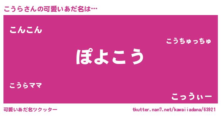 | ヘコむあだ名 | 『こうもー』『こうお』『こうら(笑)』 |