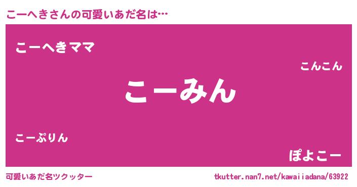 | ヘコむあだ名 | 『こーへき(爆)』『こーにゅー』 |