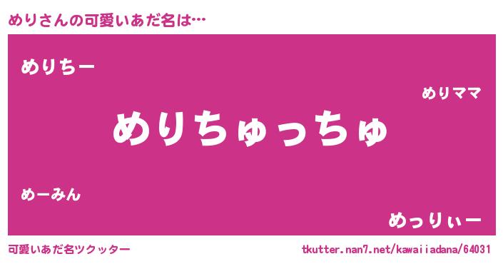 | ヒーロー風カッコイイあだ名 | 『天空の使者めり』『ウルトラめりマン』 |