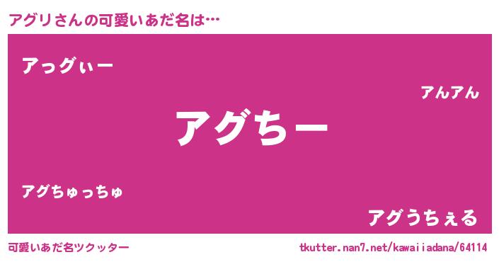 | 女子向けラノベタイトル風あだ名 | 『アグリの雑貨屋さん』『闇のアグリ』 |