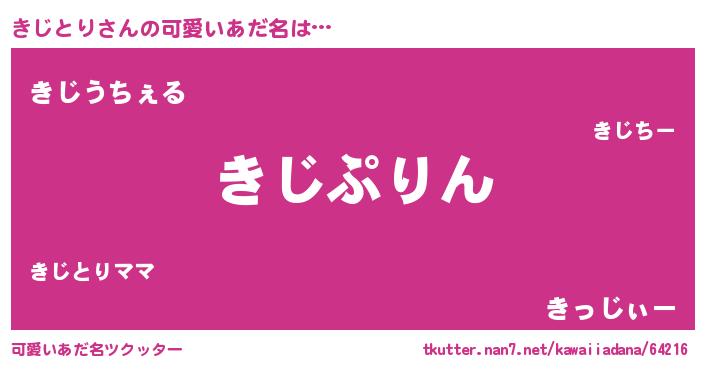 | 意味不明あだ名 | 『つくし科きじとり属』『自称きじとり』 |