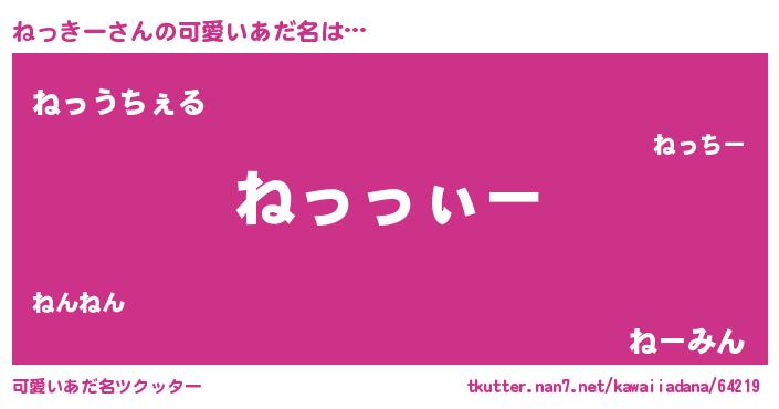 | 男性向けラノベタイトル風あだ名 | 『ねっきーの嫁は女の子じゃないと思った?』 |