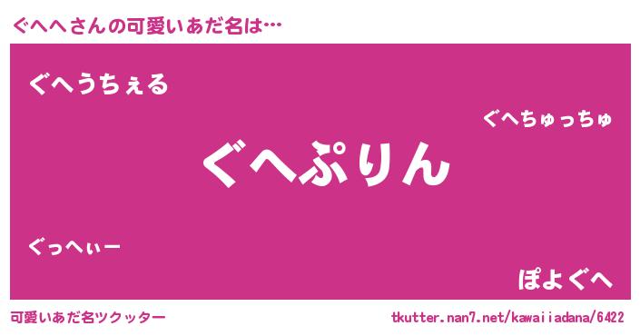 | ヒーロー風カッコイイあだ名 | 『サイバー戦士グヘヘ』『仮面グヘダー』 |