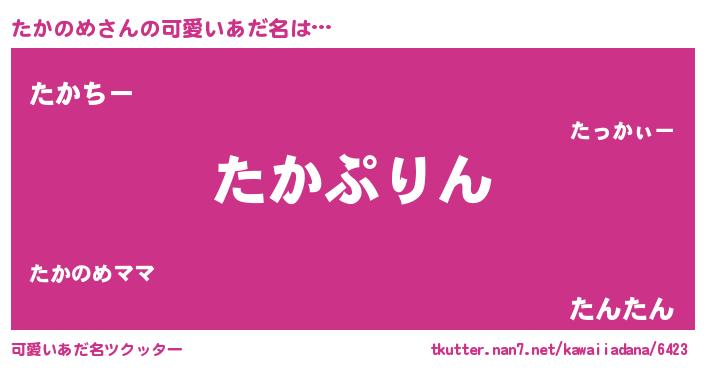 | 男性向けラノベタイトル風あだ名 | 『たかのめ~年齢イコール彼女いない歴の魔法使い~』 |