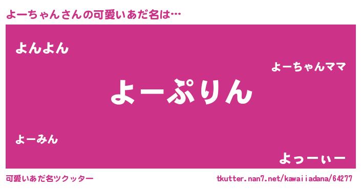 | ヘコむあだ名 | 『よーもー』『よーぷりん』 |