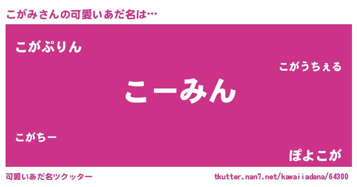 | 意味不明あだ名 | 『めかぶ科こがみ属』『自称こがみ』 |