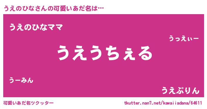 | 意味不明あだ名 | 『自称うえのひな』『永久保存うえのひな』 |