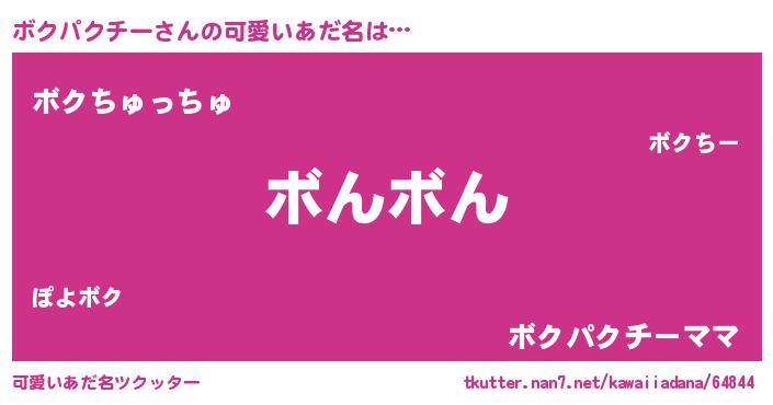 | ヘコむあだ名 | 『ボクにゅー』『ボクパクチー(小並感)』 |
