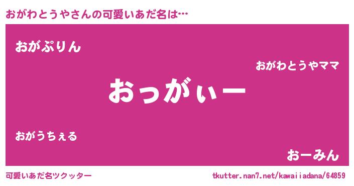 | 男性向けラノベタイトル風あだ名 | 『おがわとうやの嫁は女の子じゃないと思った?』 |
