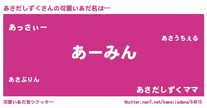 | 意味不明あだ名 | 『とにかく怪しいあさだしずく』 |