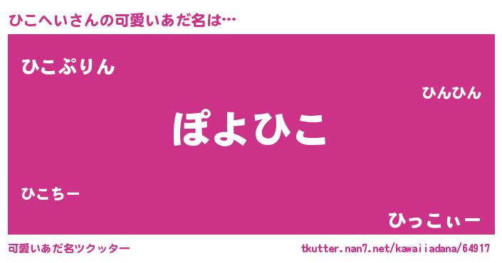 | 恥ずかしいあだ名 | 『ヒコリンリン』『プリティーひこへい』 |