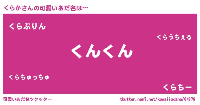 | 意味不明あだ名 | 『ペロリンくらか』『なめこ科くらか属』 |