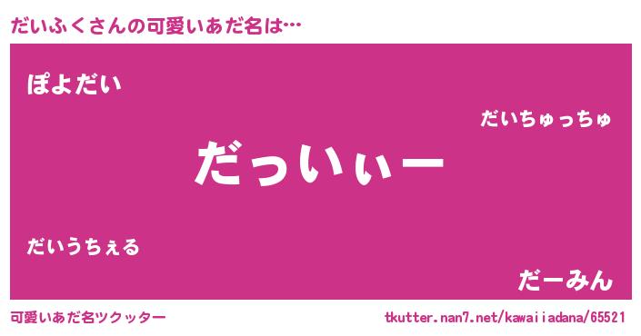 | 男性向けラノベタイトル風あだ名 | 『ダンジョンにだいふくを求めるのは間違っているだろうか』 |