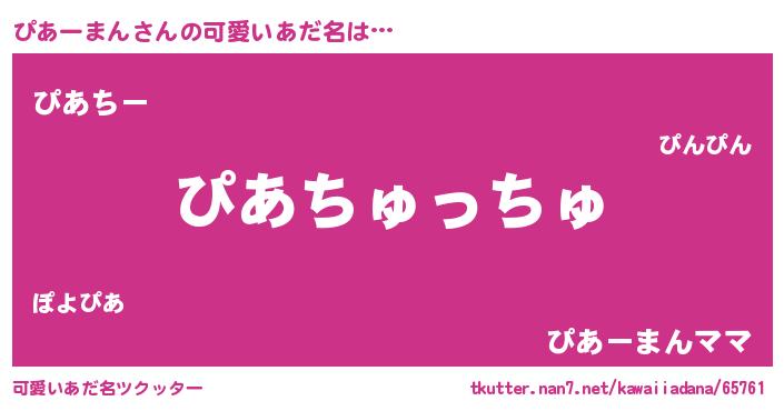 | 2回繰り返すあだ名 | 『ぽよぽよ』『ぴぴああ』『かたかた』 |