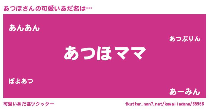 | 恥ずかしいあだ名 | 『あつちん』『プリティーあつほ』 |