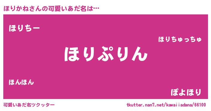 | 男性向けラノベタイトル風あだ名 | 『ほりかね~年齢イコール彼女いない歴の魔法使い~』 |