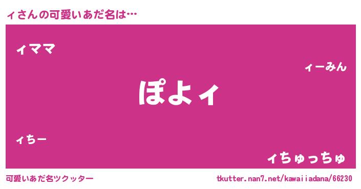 | ポケモン風あだ名 | 『ィーイ』『ゼニィ』『ィックウザ』 |