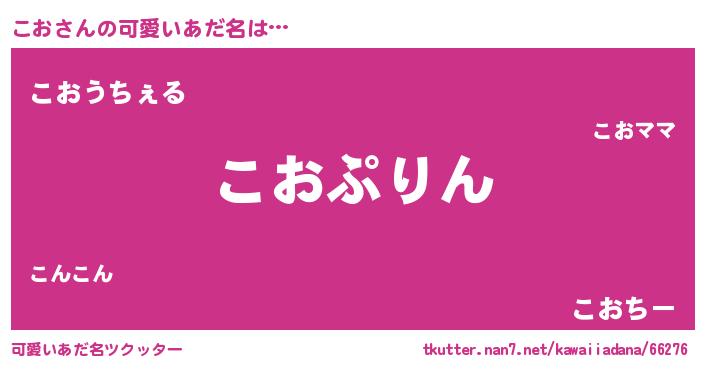 | 意味不明あだ名 | 『なめこ科こお属』『自称こお』 |