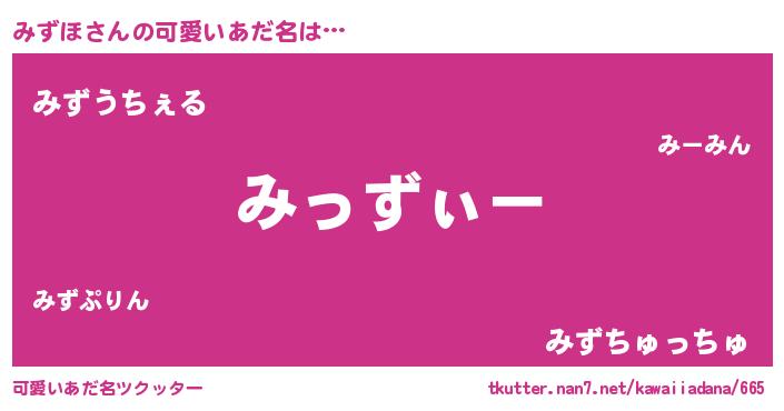 | ヒーロー風カッコイイあだ名 | 『炎刃騎士ミズ』『超時空戦士ミズホ』 |