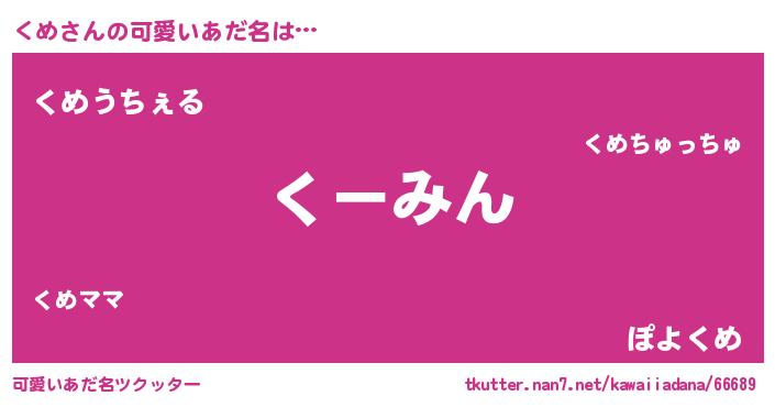 | ヘコむあだ名 | 『くめ(爆)』『くめふぇ~』『くめを』 |