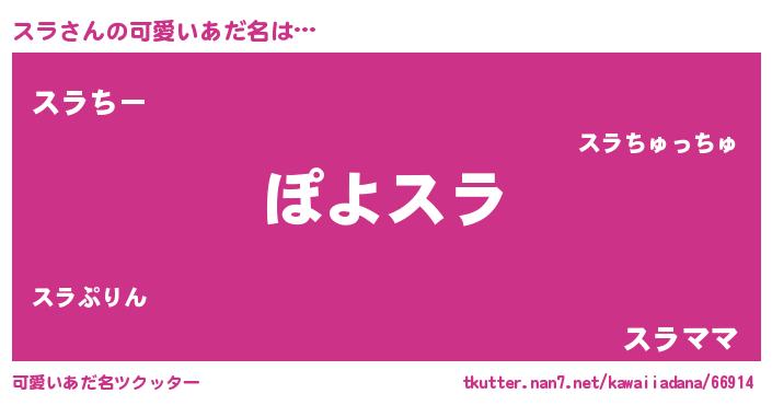 | 恥ずかしいあだ名 | 『スラっちょ』『スラちん』 |