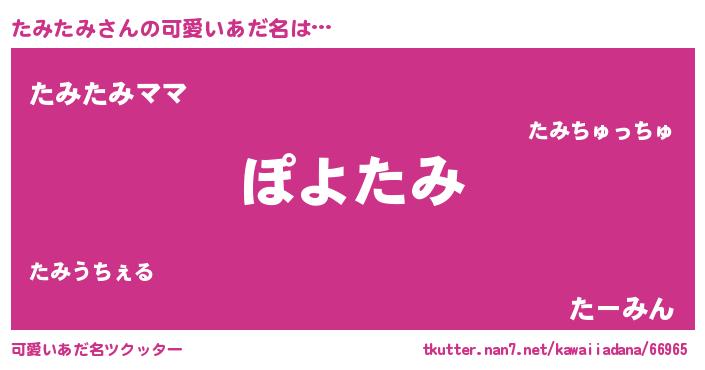 | ヘコむあだ名 | 『たみたみ(爆)』『たみぷりん』 |