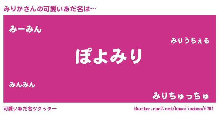 | ヘコむあだ名 | 『みりにゅー』『みりか(笑)』『豆乳』 |