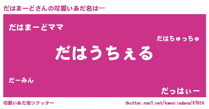 | 男性向けラノベタイトル風あだ名 | 『Re:だはまーどから始める異世界生活』 |