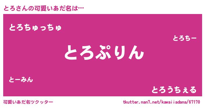 | ヒーロー風カッコイイあだ名 | 『天空の使者とろ』『超時空戦士トロ』 |