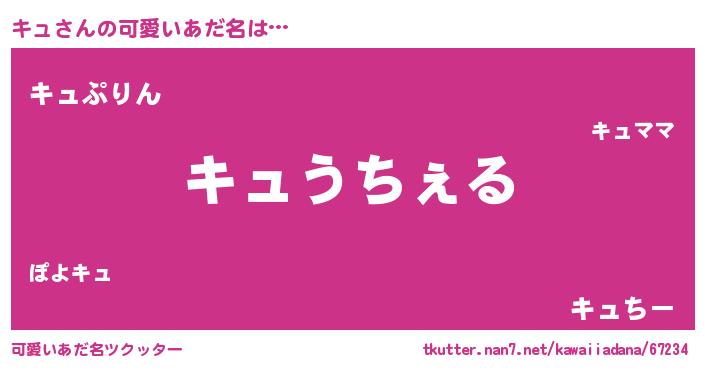| 意味不明あだ名 | 『自称キュ』『ヨモギ科キュ属』 |