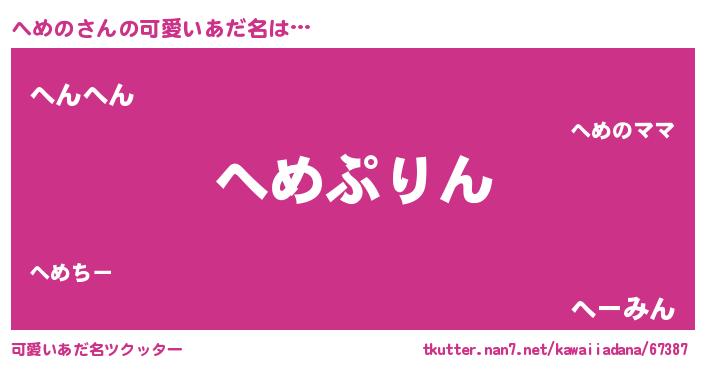 | 男性向けラノベタイトル風あだ名 | 『ヘメノスレイヤー』『へめのの憂鬱』 |