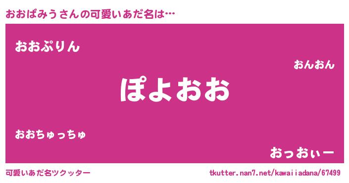 | 恥ずかしいあだ名 | 『オオリンリン』『プリティーおおばみう』 |