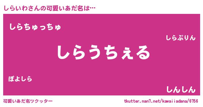 | 女子向けラノベタイトル風あだ名 | 『しらいわなんてお断りですっ。』 |
