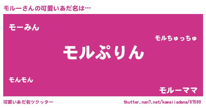 | 男性向けラノベタイトル風あだ名 | 『モルースレイヤー』『緋弾のモルー』 |