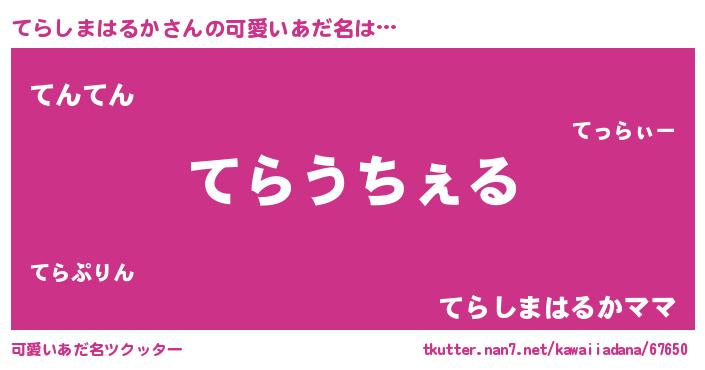 | 恥ずかしいあだ名 | 『テラシマハルカデラックス』『てらちん』 |