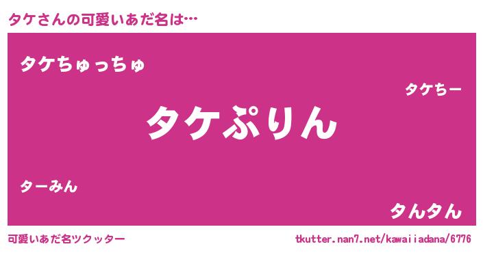 | ヘコむあだ名 | 『タケにゅー』『豆乳』『タケっぺ』 |