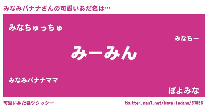 | 男性向けラノベタイトル風あだ名 | 『うちのみなみバナナが世界を掌握している!』 |