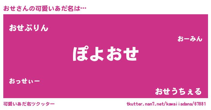 | 男性向けラノベタイトル風あだ名 | 『この素晴らしい世界におせを!』 |