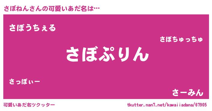 | ヒーロー風カッコイイあだ名 | 『最強戦士サボネン』『愛の使者さぼねん』 |