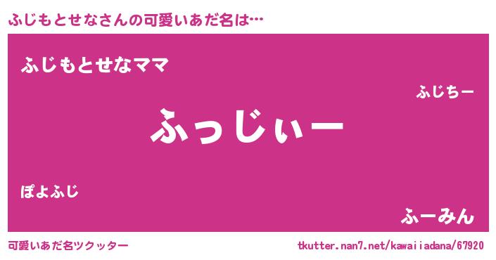 | 男性向けラノベタイトル風あだ名 | 『ふじもとせなの嫁は女の子じゃないと思った?』 |