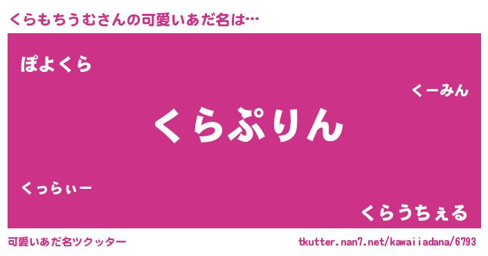| 女子向けラノベタイトル風あだ名 | 『くらもちうむの玉の輿計画!』 |