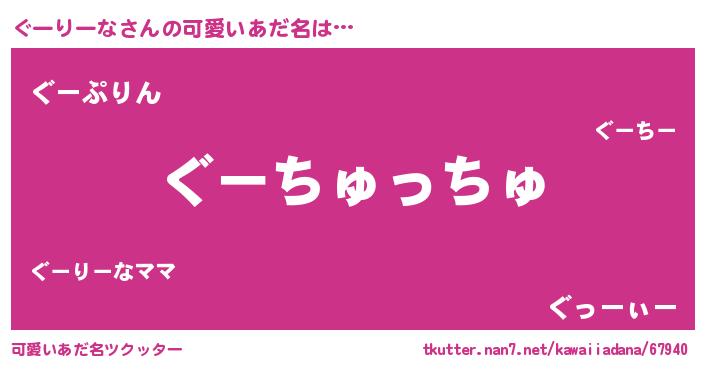 | 意味不明あだ名 | 『眠気覚ましガムぐーりーな味』 |
