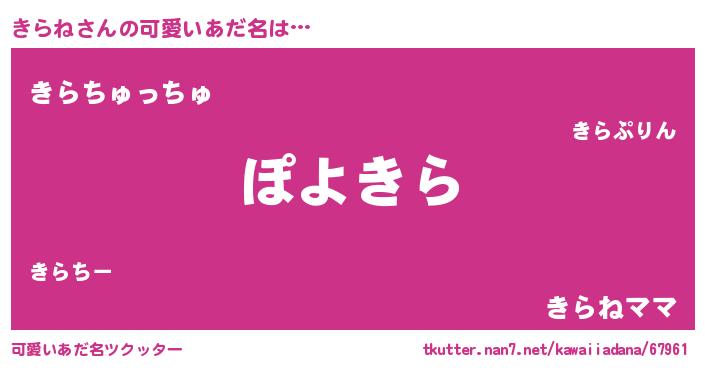| ヘコむあだ名 | 『きらね(爆)』『つくし』 |