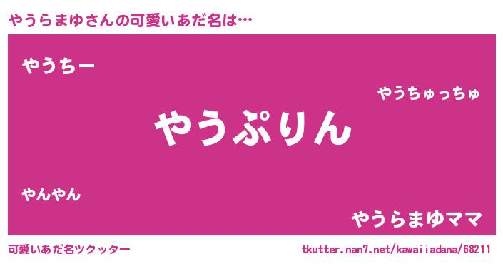 | 男性向けラノベタイトル風あだ名 | 『転生したらやうらまゆだった件』 |