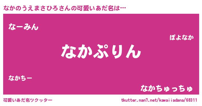 | 男性向けラノベタイトル風あだ名 | 『なかのうえまさひろ~年齢イコール彼女いない歴の魔法使い~』 |