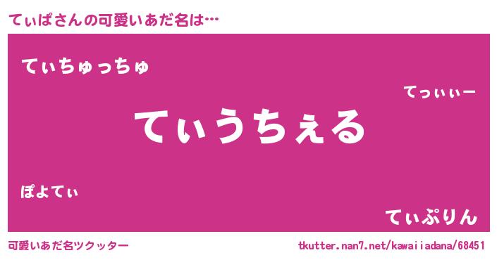 | 男性向けラノベタイトル風あだ名 | 『魔法科高校のてぃぱ』 |