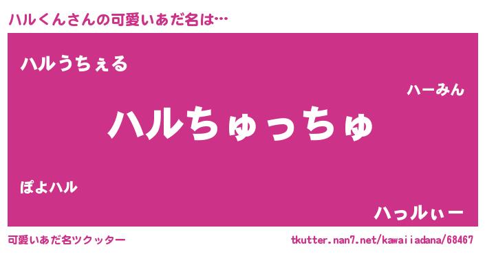 | ヒーロー風カッコイイあだ名 | 『慈愛の使者ハルくん』『魔戒騎士ハル』 |