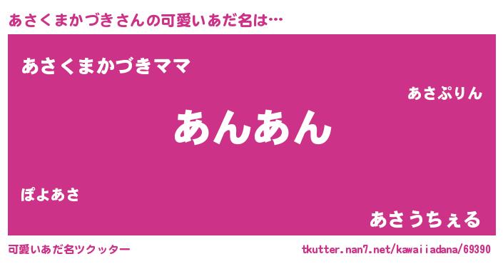| 恥ずかしいあだ名 | 『プリティーあさくまかづき』『あさちん』 |