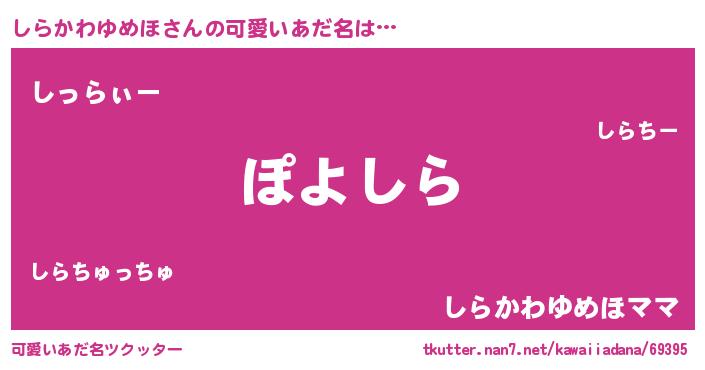 | ヘコむあだ名 | 『しらぷりん』『しらかわゆめほ(笑)』 |