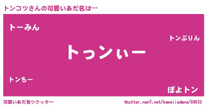 | 女子向けラノベタイトル風あだ名 | 『トンコツの卵を拾いまして』 |